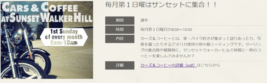 常滑のサンセットウォーカーヒルさんまでは10分弱。毎月第一日曜日はこういった集まりに参加することも!
